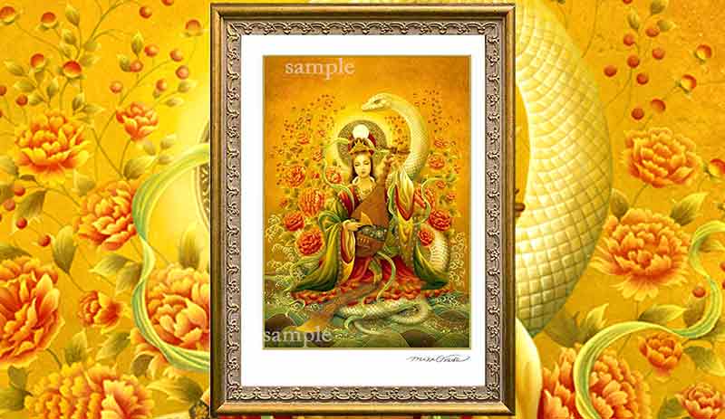 神仏や龍神の神秘的な存在を、繊細な筆致と深い祈りの心で描いています。