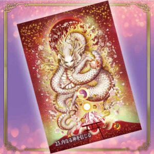 「光の龍神カード」は、全40枚のオラクルカードで、龍神からの力強いメッセージと深い導きを届けます。困難な状況でも、あなたを照らし、真実へと導いてくれます。龍神の光が心の奥に眠る真実を引き出し、人生の岐路で正しい方向を示します。光の龍神カードは、あなたの成長と変容をサポートし、新たな未来への扉を開く力強いパートナーです。